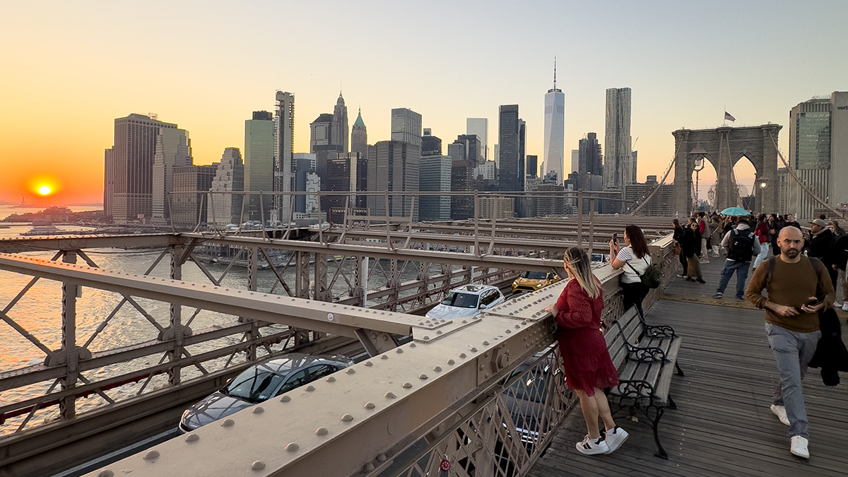 Camminare lungo il Brooklyn Bridge è uno dei momenti più iconici e suggestivi a New York. Ti consiglio di partire da Brooklyn verso Manhattan: lo skyline si avvicina passo dopo passo, mentre puoi ammirare l’East River e il Manhattan Bridge sullo sfondo. L’alba o la prima mattina sono perfette: la luce è morbida, la città è più tranquilla e, grazie al jet lag, svegliarsi presto non pesa affatto!